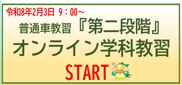 令和8年2月3日 9:00~ 【ご利用にあたっての注意事項】 ※オンライン学科の受講には、事前にオンライン学科説明会への参加が必須となります。 本説明会のご案内はココをクリック! ※本説明会への参加条件は普通車教習の第二段階に在籍している方が対象となります。 ※『第二段階』の学科教習は、対面学科と併用して教習を進めることができます。 ※『段階毎一括予約安心コース』、『短期集中安心コース』の方は、オンライン学科の受講はできません。